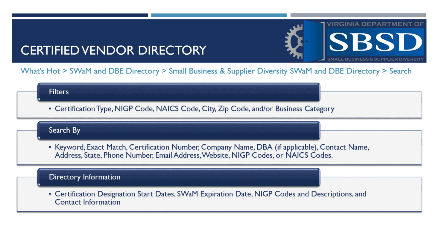 Département des petites entreprises et de la diversité des fournisseurs de Virginie Tutoriel de l'acheteur SWaM