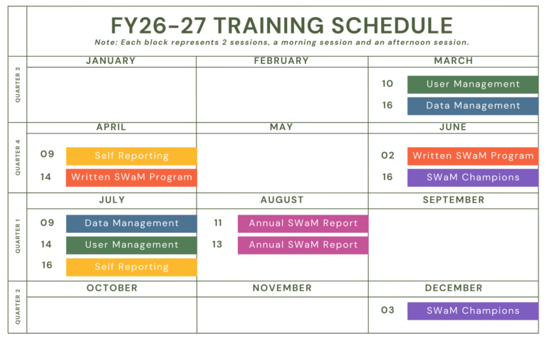 Bienvenue sur la page des acheteurs de DSBSD. Cette page vous donne un accès direct au portail du tableau de bord des dépenses SWaM afin que vous puissiez vérifier et contrôler les dépenses SWaM de votre agence par rapport à vos objectifs et vérifier les mises à jour législatives qui auront un impact sur la réalisation de vos objectifs.